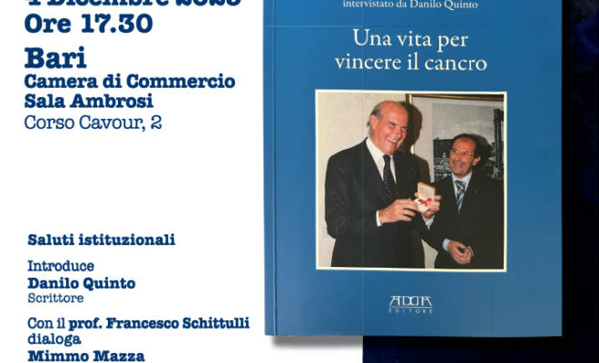 Cari amici, insieme al Prof. Francesco Schittulli, Presidente Nazionale della LILT, ho scritto un libro-intervista intitolato “Una vita per vincere il cancro”. Introdurrò la presentazione del libro – i cui ...